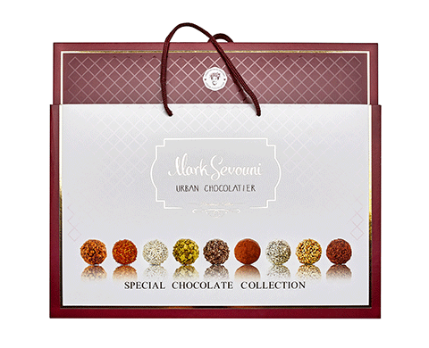 Chocolate fondue-flavored cream filling and crushed cocoa sprinkling