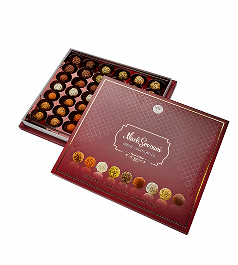 Chocolate fondue-flavored cream filling and waffle crumbs sprinkling