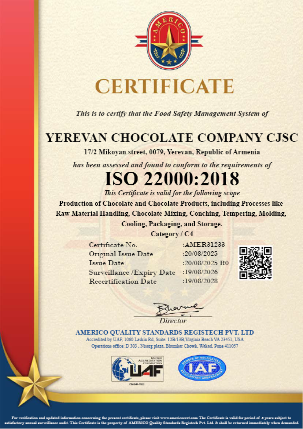 История Ереванской шоколадной компании начинается с 2006 года. Начиная свою деятельность под именем “Сонагро”, компания, исходя из опыта первых лет работы, решила представить потребителю высококачественную продукцию, новые бренды и в будущем добиться всемирного признания.